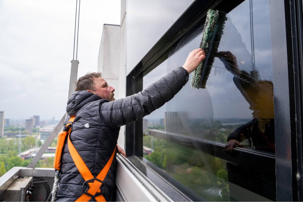 Er zijn verschillende manieren om ramen weer helder en streeploos te krijgen. We doen dit in sommige gevallen traditioneel, met een ladder. In verband met de veiligheid van onze medewerkers en klanten maken we liever gebruik van het zogenaamde tuckerpole-systeem: een slang met een stok en een borstel, zodat vanaf de grond ramen op grotere hoogten kunnen worden gewassen. We doen dit met osmosewater. Hieruit zijn alle mineralen, zoals kalk, verwijderd, zodat het vlekkeloos opdroogt. De ramen hoeven dan dus niet meer drooggewist te worden. Om veilig te kunnen werken op grotere hoogten maken we gebruik van een hoogwerker. Deze is voorzien van valbescherming en wordt periodiek op veiligheid getest door een gespecialiseerde leverancier.